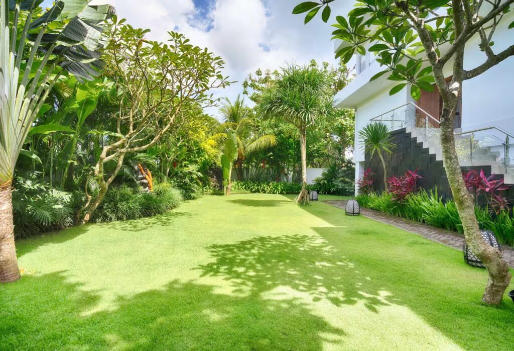 Each of the four bedrooms is a private escape in itself, featuring king-sized beds, designer furnishings, and ensuite bathrooms with luxurious stone tubs and rainfall showers. Floor-to-ceiling glass doors open to either garden terraces or pool views—bringing Bali’s natural beauty right to your bedside.